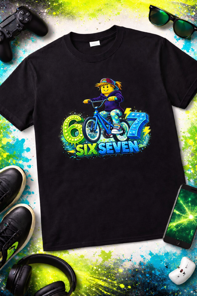 Stylowa i wygodna koszulka dziecięca z modnym motywem Six Seven. Idealna na co dzień – do szkoły, przedszkola, na spacer czy zabawę z rówieśnikami. Łączy komfort noszenia z nowoczesnym wyglądem, który spodoba się każdemu dziecku.